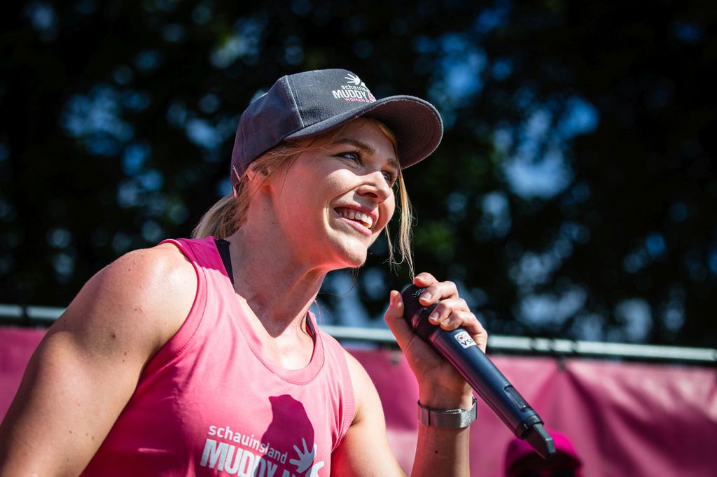 Sie planen ein großes Event und benötigen eine extrovertierte Trainerin für die Warm-Up Bühne?